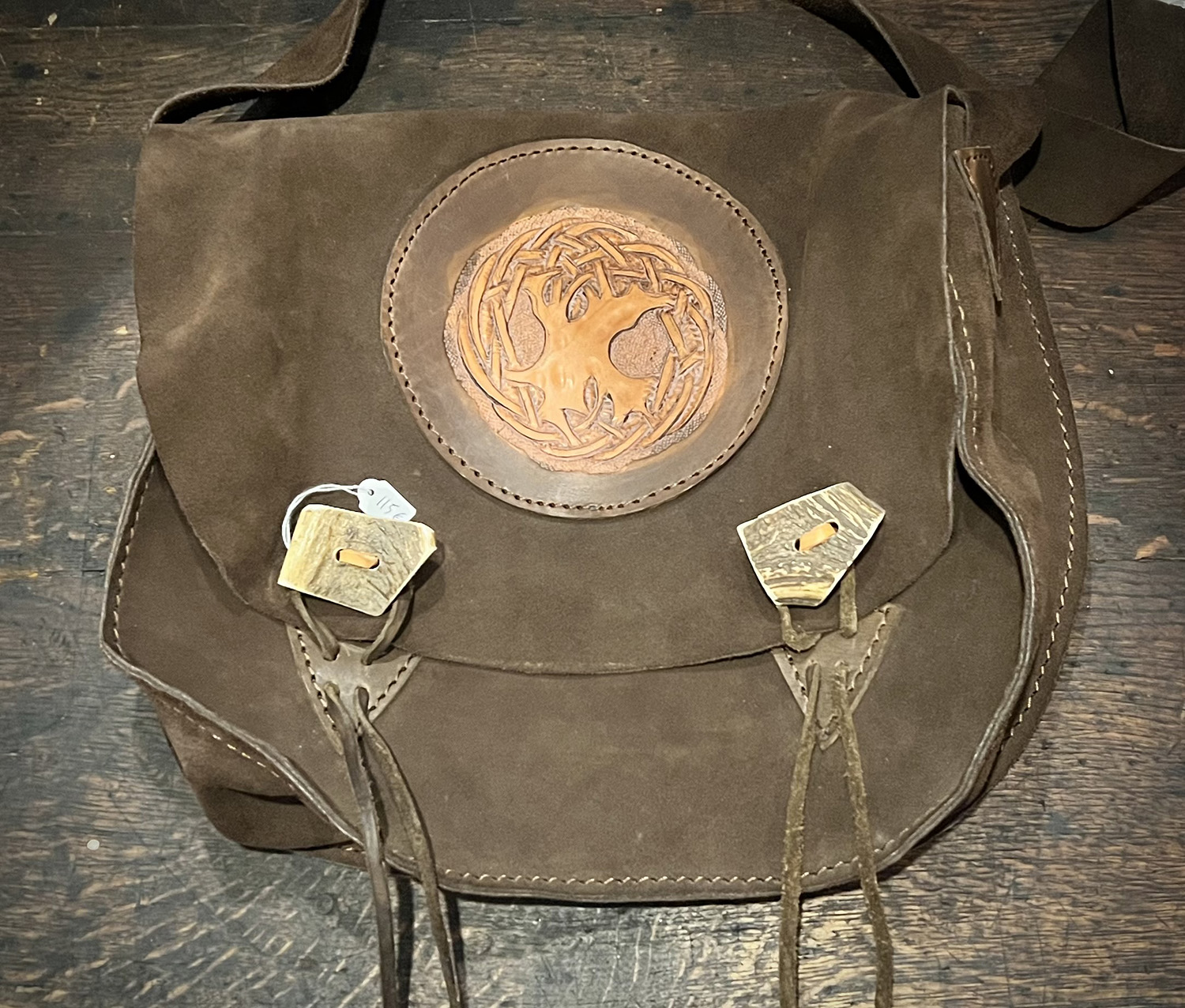 Réalisable en marron clair, marron foncé ou noir, avec une plaque en cuir épais cousue sur le rabat ornée d'un motif en repoussé.