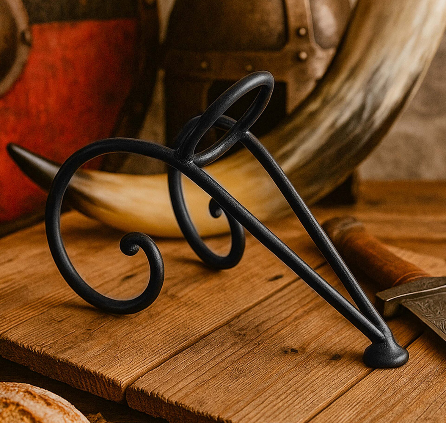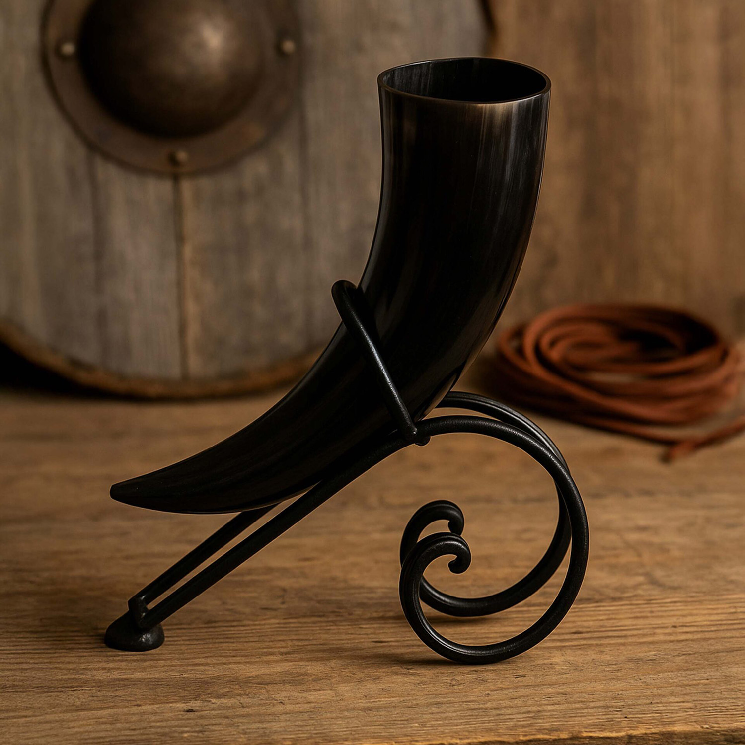 Support pour poser sur une table une corne à boire de format classique, environ 35cl.(vendu sans la corne, nous en proposons séparément)