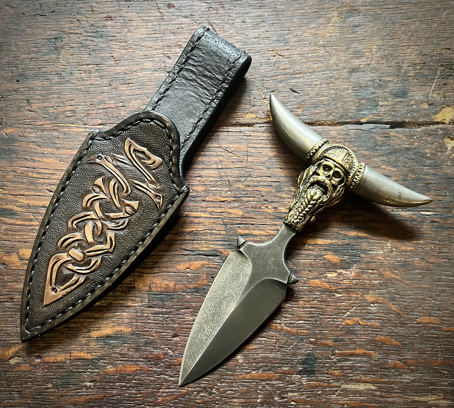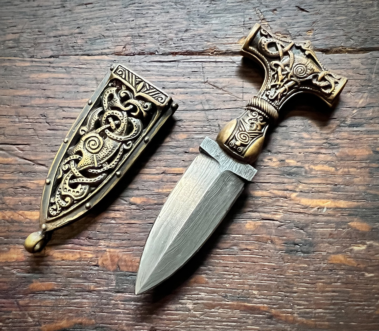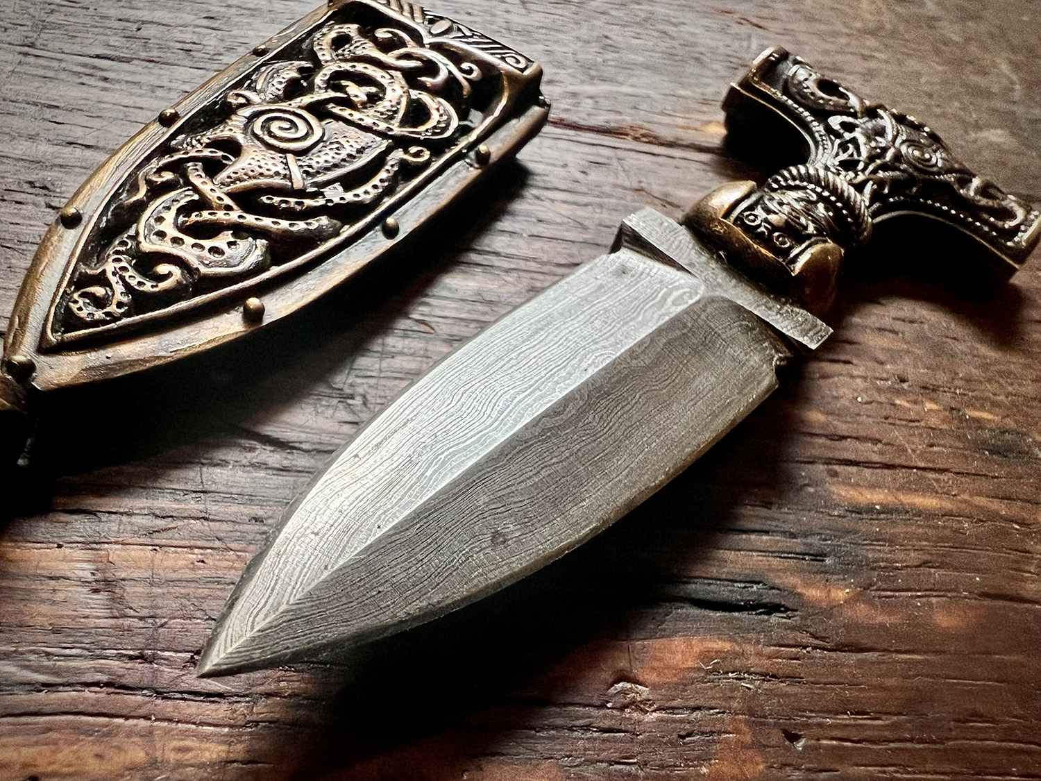 Petite push-dagger "Mjollnir" (bronze, lame damas) : 120€