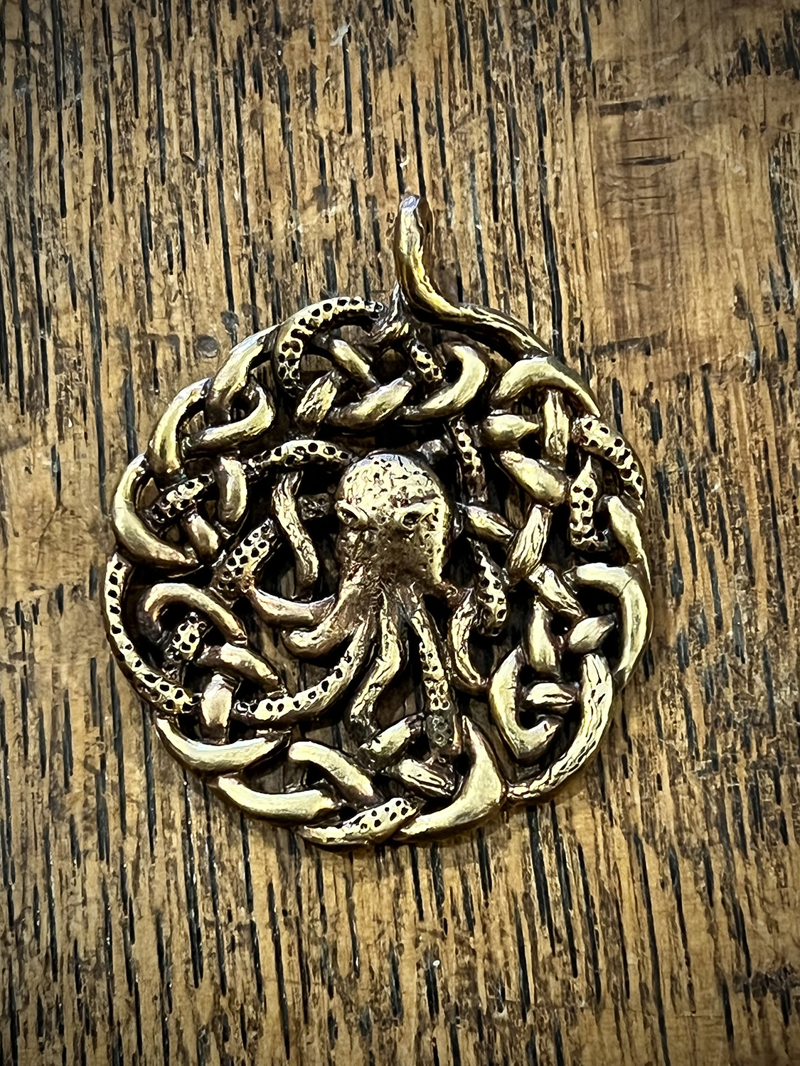 Joli pendentif représentant une créature tentaculaire entrelacée dans un style celtique / nordique.