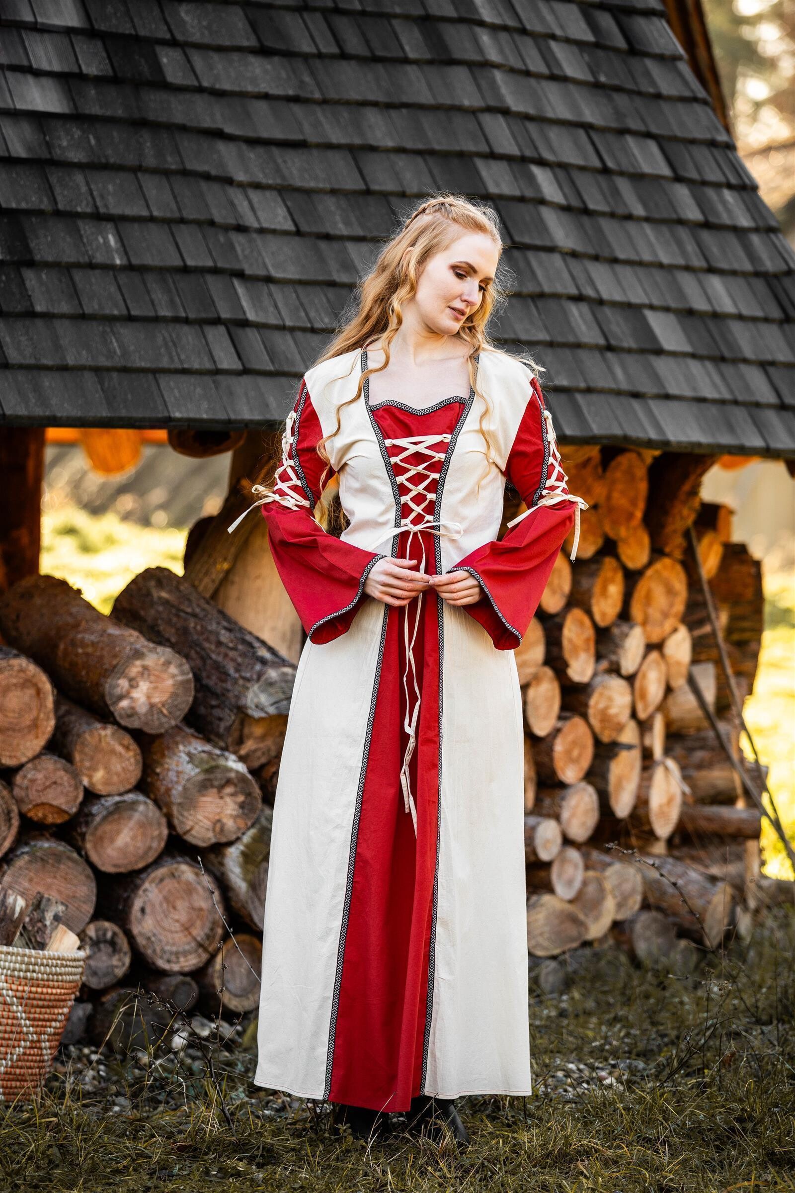 Robe, 100% coton, ajustable par des laçages devant, derrière et sur les manches.