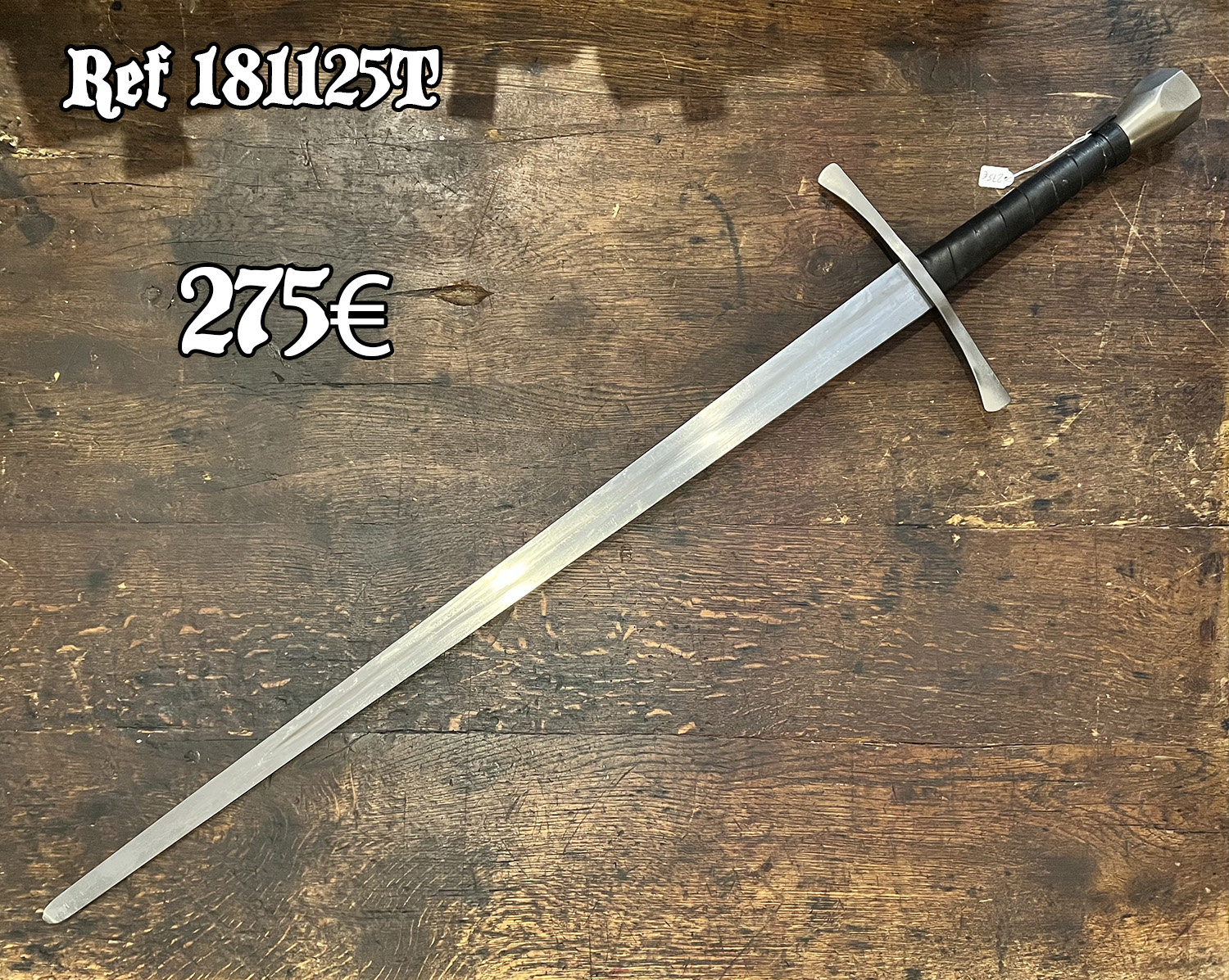 Epée du XIIIème / XVème siècle. Excellent premier choix pour débuter l'escrime ancienne, c'est une arme bien équilibrée qui s'adapte aux différents types d'escrime (une main, une main et bouclier, deux mains).