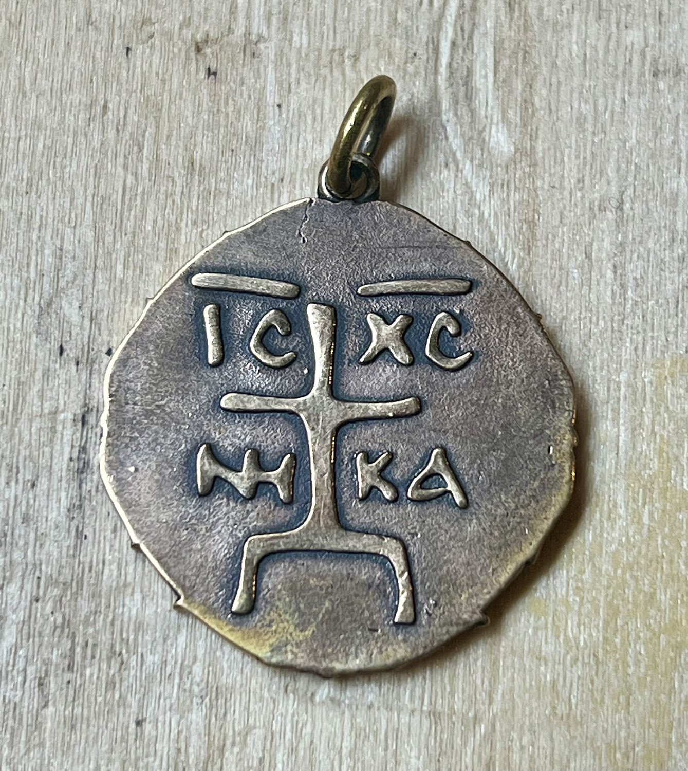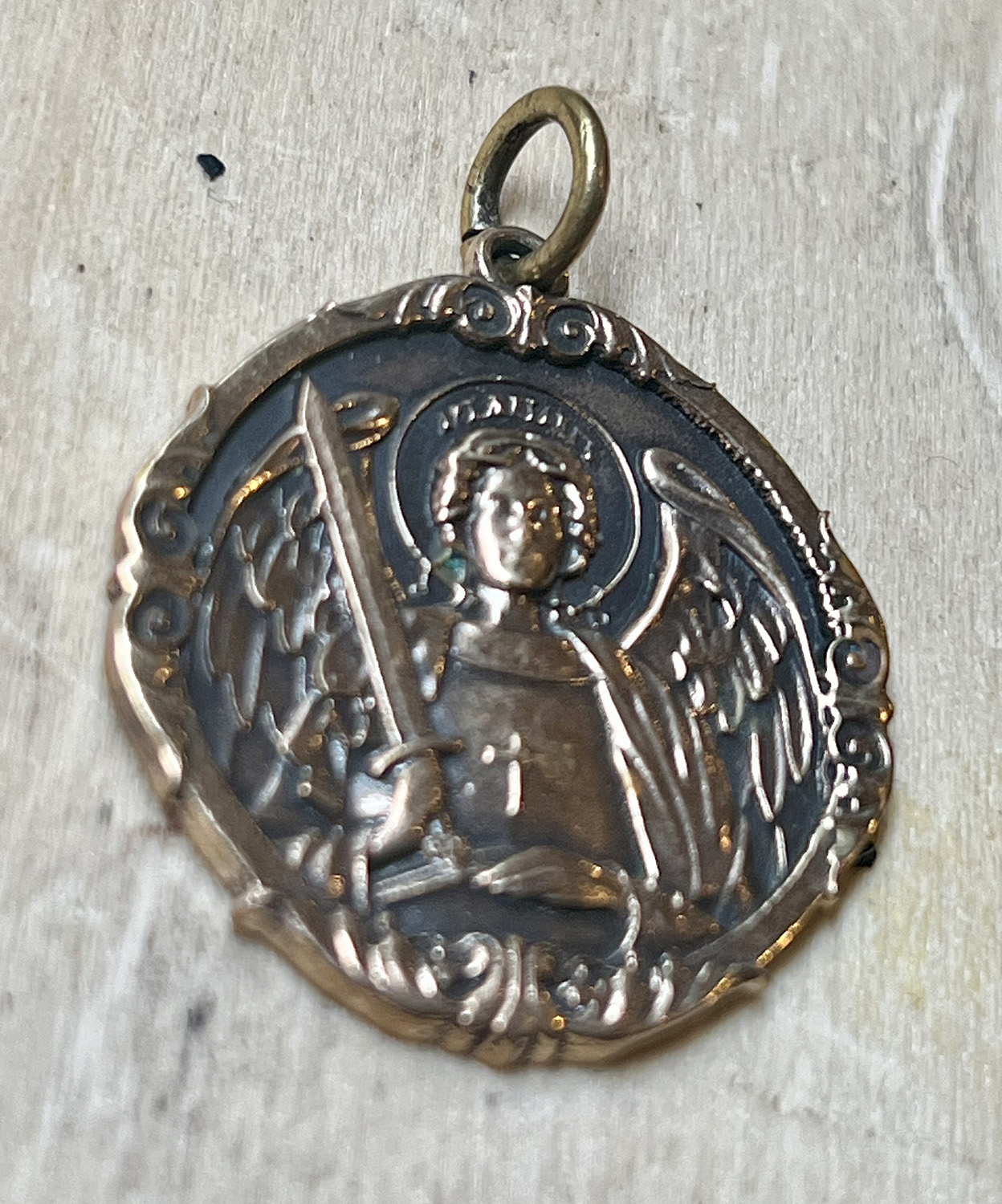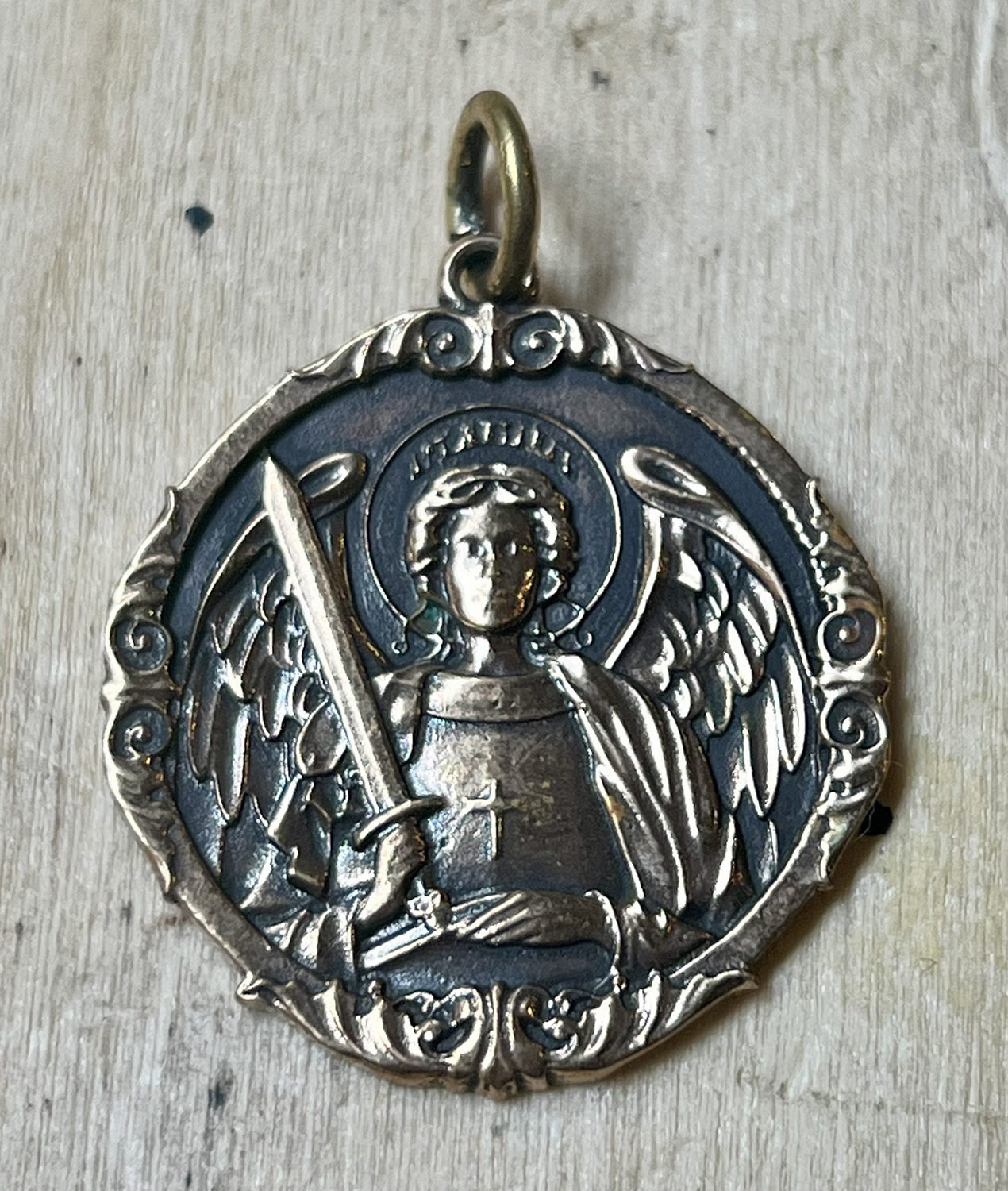 Pendentif en bronze représentant St Michel.