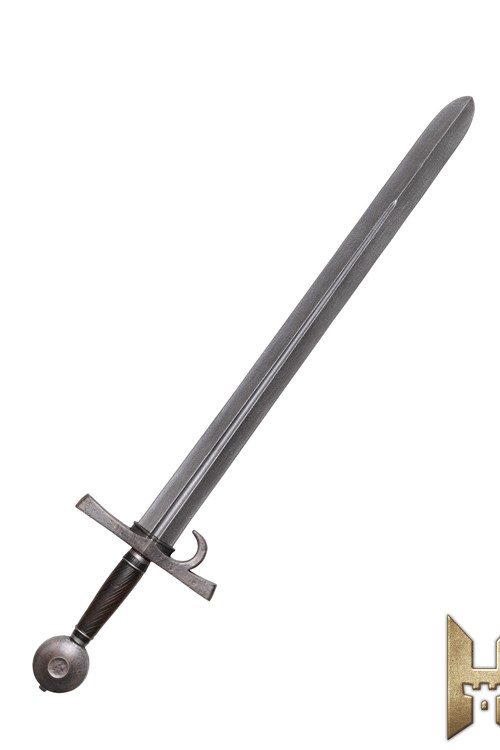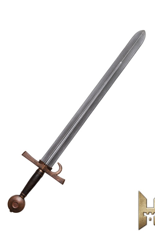 Arme factice pour jeux de rÎle Grandeur Nature. La poignée est en polyurethane, la lame en mousse relativement tendre pour du combat en sécurité moulée autour d'une tige ovale en fibre de verre. L'ensemble est peint à la main, ce qui peut entraßner des variations minimes rendant chaque arme unique.