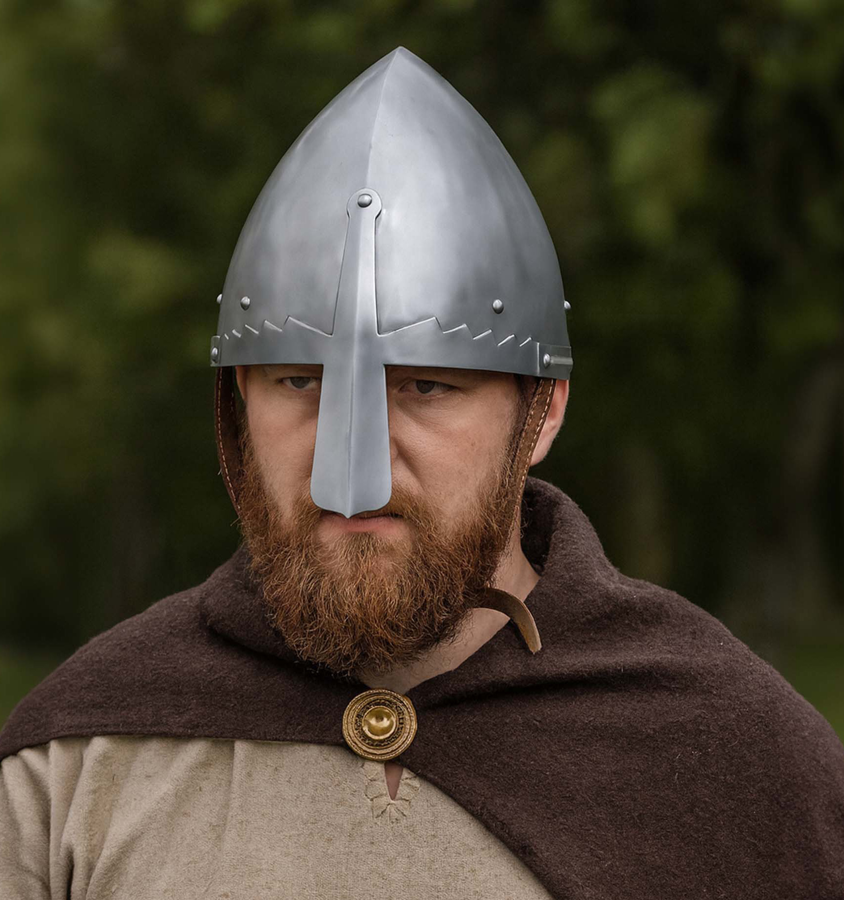 Casque à nasal basé sur un modèle du Xème siècle, retrouvé à Prague (République Tchèque).